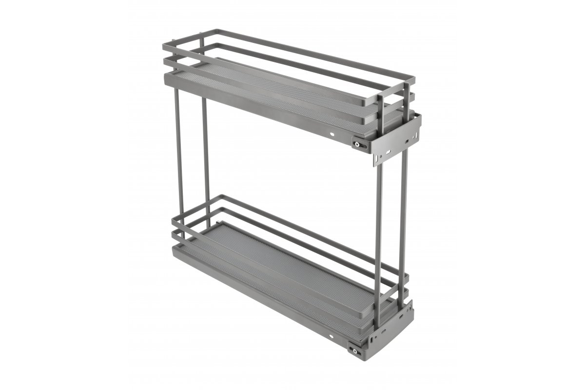 Kosz cargo GTV MOVIXPRO to wysuwany system z półkami przeznaczony do szafek kuchennych. Cargo posiada 2 półki z pełnym dnem. Kosz wykonany jest z metalu malowanego proszkowo na elegancki antracytowy kolor. Sprawdzi się jako wyposażenie dolnych szafek o minimalnej szerokości zewnętrznej wynoszącej 200 mm.