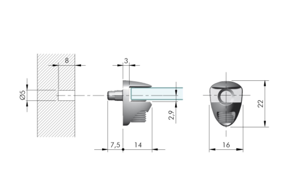 Podpórka do szklanych półek o grubości 7,5mm,
